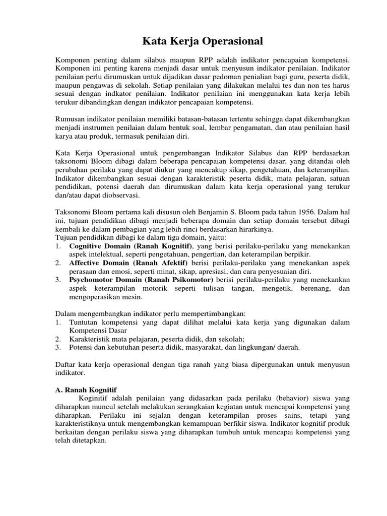 Doc Kata Kerja Operasional Dalam Penyusunan Indikator Pada