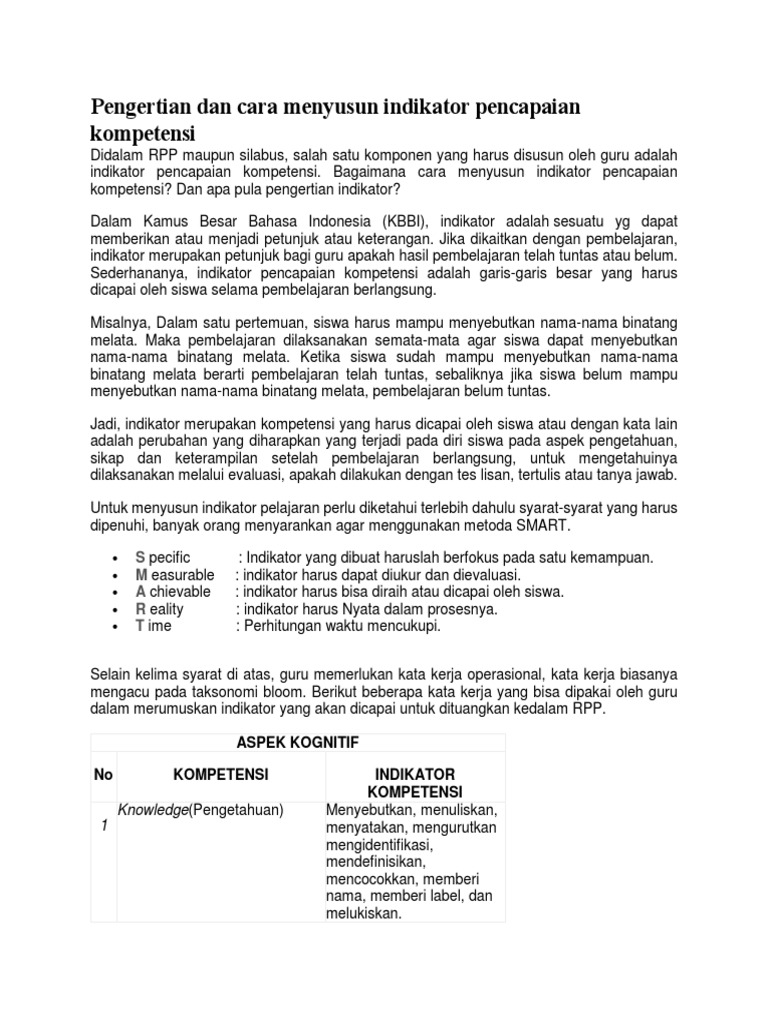 Pengertian Dan Cara Menyusun Indikator Pencapaian Kompetensi