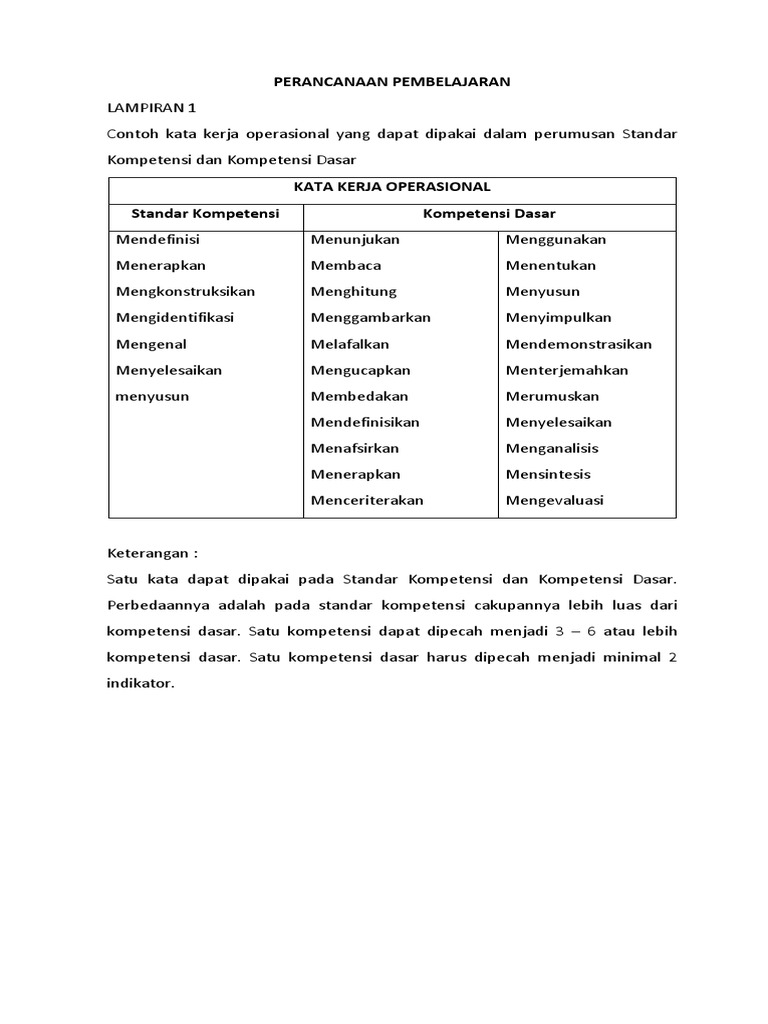 Daftar Kata Kerja Operasional Untuk Penyusunan Indikator Dan