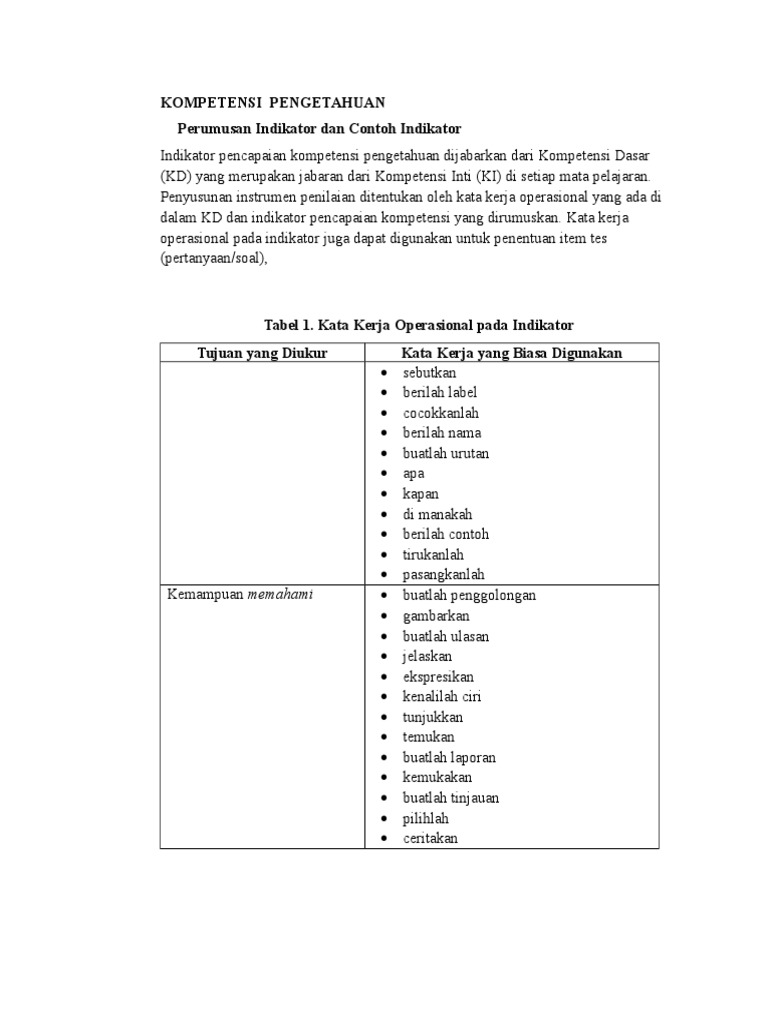 Doc Kata Kerja Operasional Merumuskan Indikator Andi Saputro